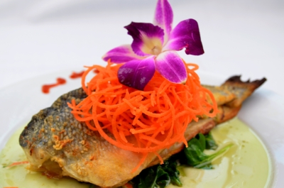Gulf Snapper in Spicy Black Bean Truffle Sauce, Severed with Stir Fried Vegetable (Sauce Contains Peanut)